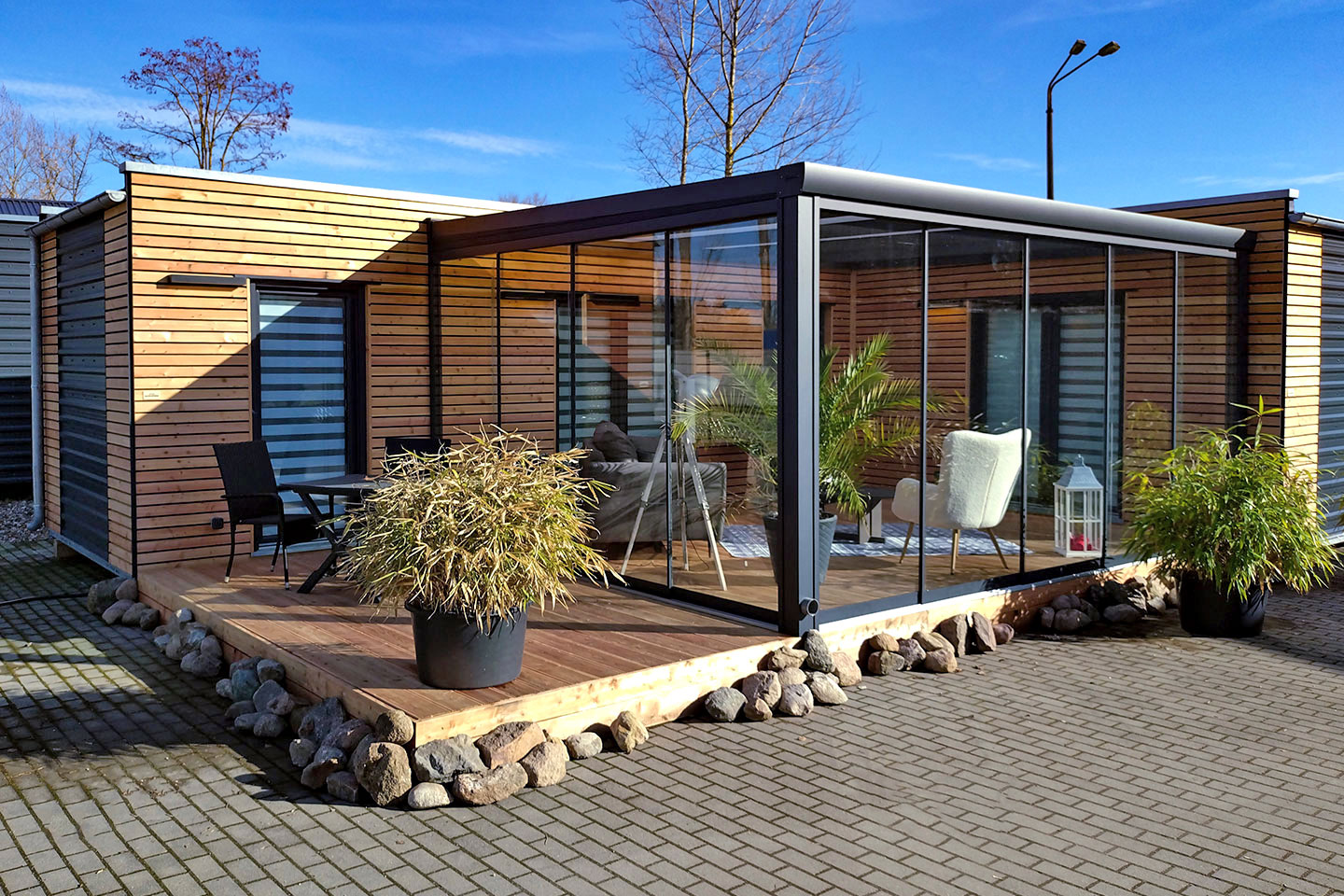 Ein Tinyhaus-to-go. Mobil wie ein Wohnwagen dank Wohnanhängerzulassung. Als Dauerwohnsitz GEG konform oder als leichtere Caravan-Variante für den Urlaub oder Dauercamping geeignet.